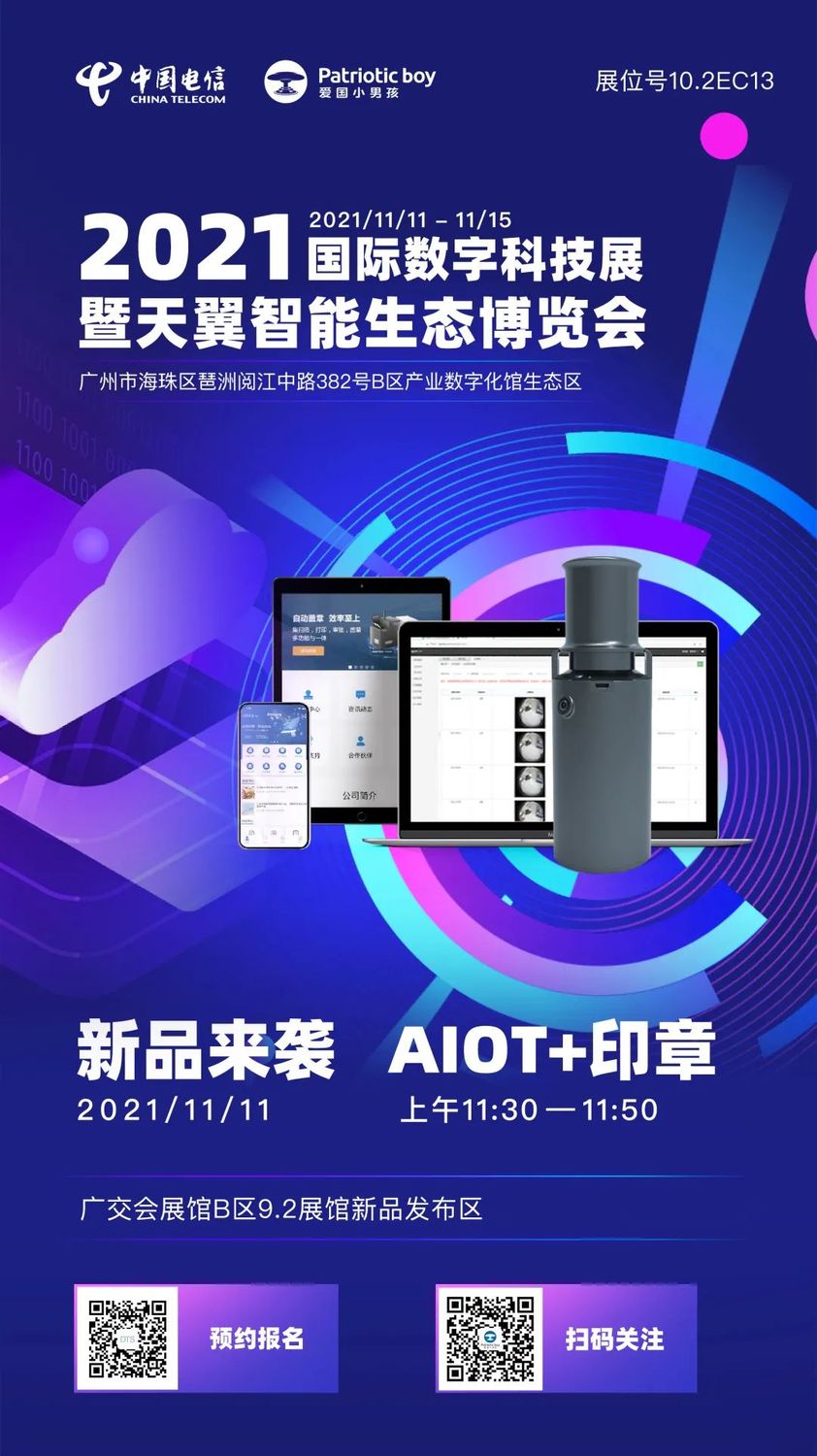 北京愛國小男孩科技有限公司(以下簡稱:“愛國小男孩”)作為國內知名的“物聯網+印章”智慧化標準服務商,受邀出席本次博覽會,帶來數字化智慧印章管理解決方案的全面展示,其智能化、前瞻的云章、云章柜、智能印控機、電子簽章、蓋章機等產品亮相10.2EC13展位,給參會嘉賓帶來了“AlOT+印章”智慧用章新體驗。