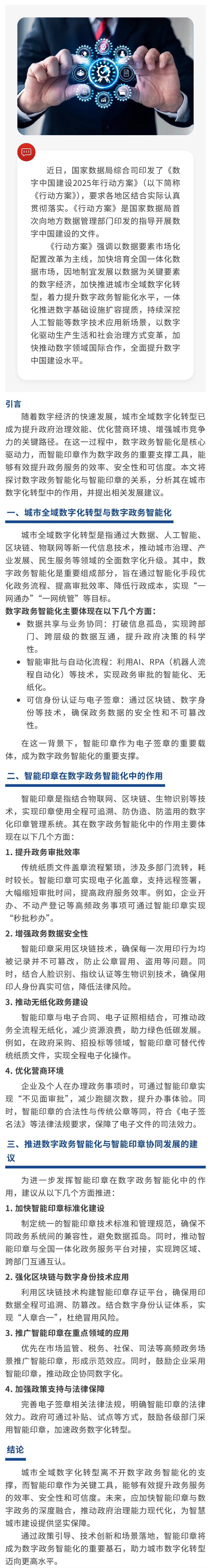 加快推進城市全域數字化轉型: 數字政務智能化與智能印章的協同發展